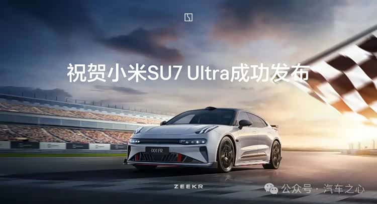 在小米 SU7 Ultra 成为上赛最速量产车后,保时捷发来贺电祝贺小米新圈速,极氪以 001 FR 为背景祝贺 Ultra 成功发布。