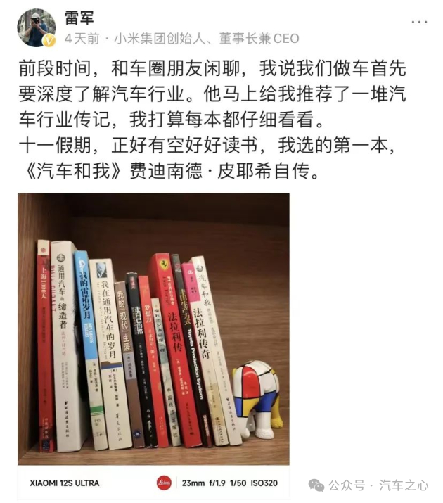 起初,雷军对于车的好奇只起源于一个问题「中国为什么还没有出现像保时捷、宝马这样的公司?」