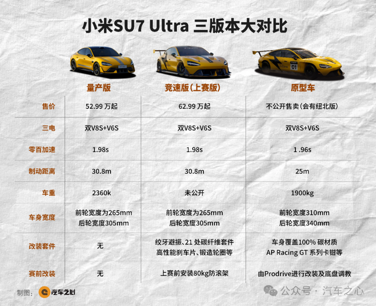 小米 SU7 Ultra 有三个版本:量产版、竞速版和原型车。