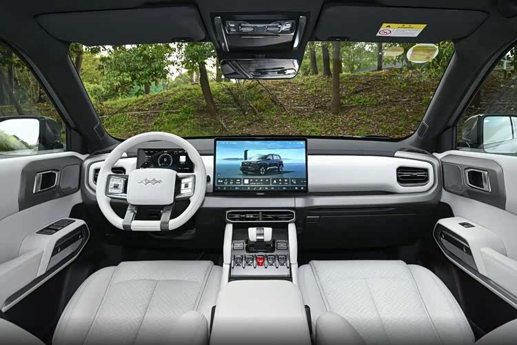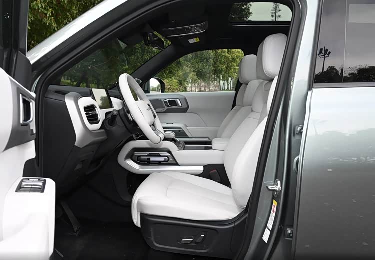 内饰部分,新车整体布局和豹5比较接近,配有悬浮式全液晶仪表和15.6英寸中控屏,四辐式方向盘和标志性电子挡杆等部件均进行了保留,但换挡杆不可升降。另外,副仪表台左右两侧分别配有车载手电筒和车载麦克风,或出于对户外露营场景的考量,实用性和情绪价值都得到了满足。扶手箱内置车载冰箱,支持零下6摄氏度至6摄氏度制冷以及35摄氏度至50摄氏度制热,可调节范围较大。钛3全系标配天神之眼C-高阶智驾三目版,可以支持高快领航和智能泊车等功能。新车还配备有帝瓦雷音响,参考这些硬件配置可以看出,钛3定价还是比较有诚意的。