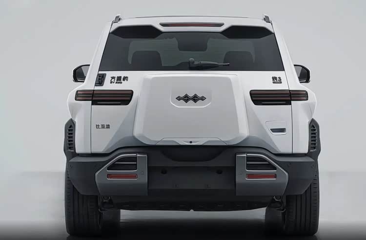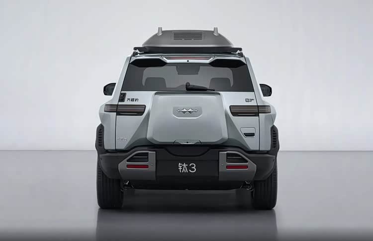 为了契合钛3的产品定位,新车采用了全新的设计语言,官方称设计灵感源于“星际战车”,前脸配备封闭式黑色格栅,日间行车灯是两条平行灯带,下方为梯形前保险杠,并且集成了毫米波雷达等部件,整体看上去具有较强的视觉冲击感。两侧轮眉造型比较独特,具有较为明显的宽体效果。尾灯设计和头灯进行呼应,车尾中间配备了一个背负式储物箱,容积为28升,可以放置一些工具,不占用后备厢空间。新车还采用了侧开式尾门,内侧配有网兜,也可以放置一些小件物品。除了这些常规的储物空间,钛3还配备了一个151升的前备厢,前机舱盖支持电动开合、远程开闭,并加入悬停及开启高度调节功能,具备较高的实用性。