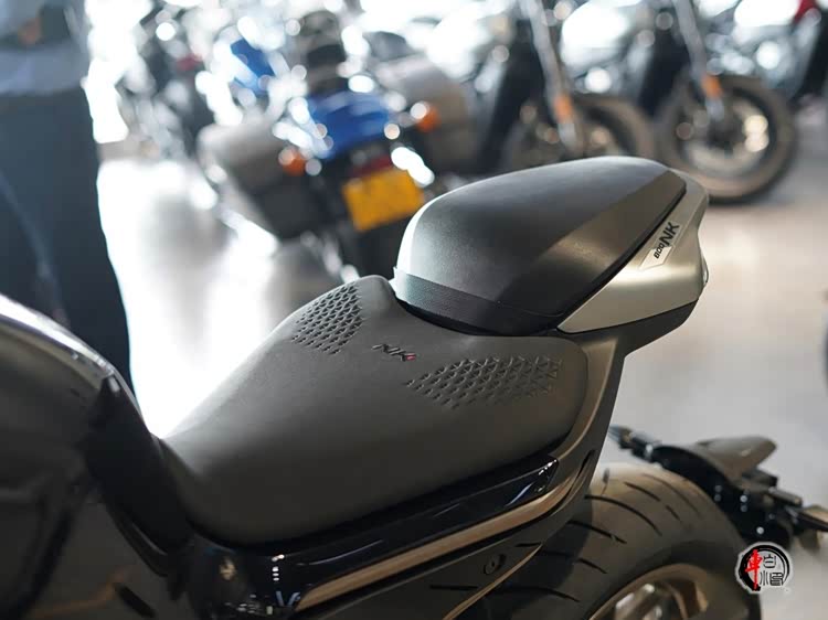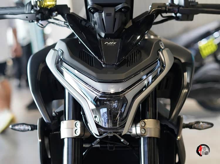 800NK灵犀+用2146mm的修长身段演绎着中式暴力美学。锆石黑涂装在阳光下泛着冷兵器般的金属光泽,金色轮毂以及金色装饰条则在视觉强化了整车的精致感。倒三角LED大灯组延续了NK家族的"刀锋"设计语言,流水式转向灯效仿佛武侠小说中的剑气流转。值得一提的是,上翘排气系统将铝合金后摇臂的肌肉线条完全裸露,进一步让整车的视觉张力得到提升。配色方面除了锆石黑还提供了星光白,满足个性化的审美追求。