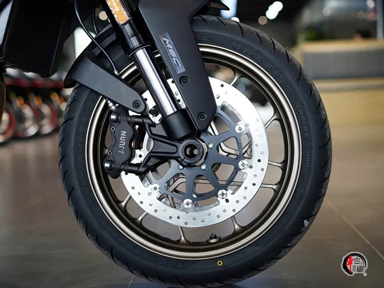 硬件方面,减震系统采用KYB 43mm倒置前叉及液压阻尼中置后减震,均支持预载调节,可依据路况调整减震性能。前刹车采用320mm双盘搭配四活塞辐射卡钳,后轮配备260mm单盘制动系统,配合博世双通道ABS,制动时自动平衡轮速避免抱死。安全配置整合博世全功能TCS牵引力控制系统,通过六轴IMU实时监测车身姿态,在湿滑路面或急加速时自动限制动力输出,以及弯道ABS、DTC扭矩控制系统,降低复杂路况下的操作风险。