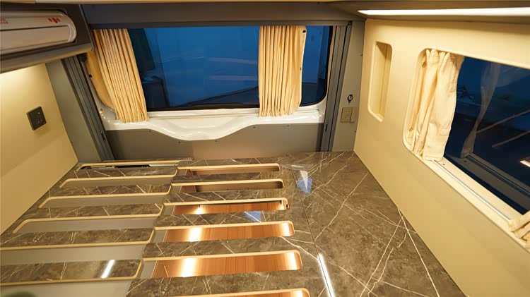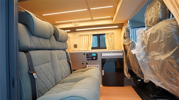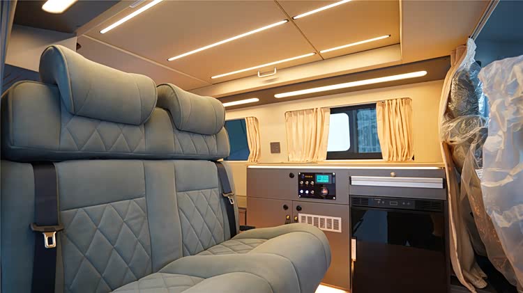 进入车内,搏创福顺升顶露营车的内饰设计令人眼前一亮。暖色居家的内饰颜色搭配,营造出一种温馨舒适的居家氛围。车内采用了铝地板或地板革材质,既美观又实用。此外,车内还配备了内外照明灯、暖色氛围灯等,为露营生活增添了更多乐趣。