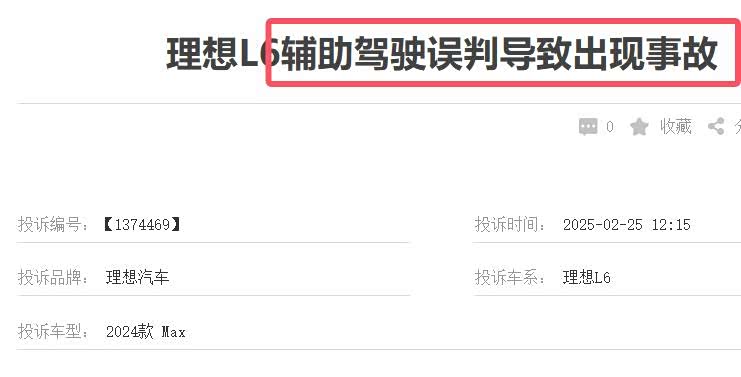 另外,“驾驶辅助系统故障”也是车主抱怨较多的问题,多位车主因理想L6的智驾系统误判而发生交通事故。有媒体报道:厦门的杨女士购买了一辆理想L6MAX车型,提车后仅不到半个小时,车辆的智驾功能就无法使用。还有车主投诉:理想L6智驾系统道路识别故障,压实线变道以及撞路障,主动安全未识别路桩!造成擦刮以及被追尾事故,我方全责!驾驶员时刻在待接管的状态,不料智驾未识别路桩并且压实线变道,无基本的安全可言!理想官方以及售后推卸责任,未能给到消费者一个合理的解释!