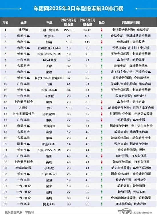 近日,理想汽车因价格变动、定(订)金纠纷等问题登上热搜。车质网发布的3月国内汽车投诉排行中, 理想L6(参数|询价)因价格变动、定(订)金纠纷等问题,投诉量一路攀升,达到了132宗,位列投诉榜第二。值得注意的是,理想L6本年度首次进入榜单便高居第二位,投诉量环比涨幅超过了5.2倍。