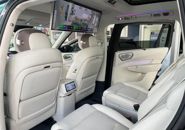 车内采用2 + 2 + 2式的6座布局,全车座椅均支持电动调节、加热、按摩功能,二排双独立座椅还配有电动腿托,折叠小桌板、30英寸6K吸顶娱乐屏、功能控制屏、9L车载冷暖冰箱、31扬哈曼卡顿performance音响系统、全景天幕、香氛系统等配置一应俱全,乘坐舒适性堪称一流。二排座椅可180°电动旋转,顶配车型还有二排零重力臻享座椅,为乘客带来了更加极致的乘坐体验。