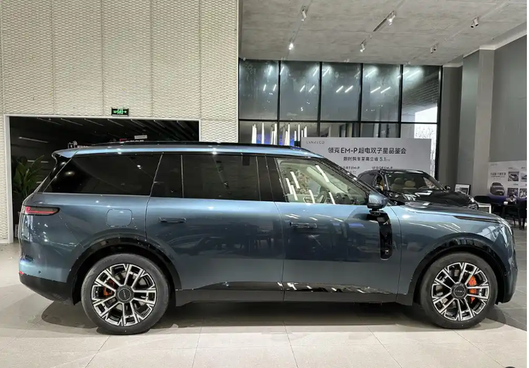 车身尺寸方面,领克900长宽高分别为5240/1999/1810mm,轴距3160mm,相比同级理想L9、问界M9更具优势。庞大的身躯配合方正饱满的轮廓,气场十足。悬浮式车顶、电吸门、电动侧踏板的加持,进一步提升了车辆的豪华气息。无边框外后视镜、隐藏式门把手、21英寸光翼轮毂+橙色卡钳的设计,时尚前卫,极夜黑、云晞灰、晨晖蓝、拂晓白、曜日银五种车色更是满足了不同消费者的个性化需求。