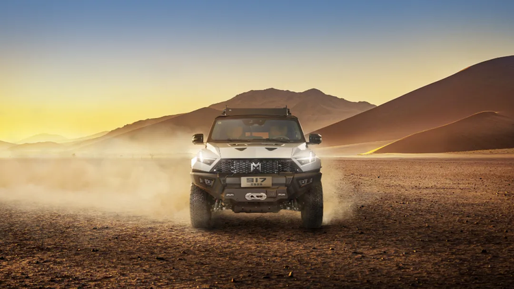 2024年,在原子弹爆炸成功六十周年之际,东风猛士917作为保障车参与了"重走罗布泊"活动。这次历时12天、全程4358公里的穿越,成为检验车辆性能的绝佳舞台。在整个穿越过程中,10台东风猛士917在辐射强烈的戈壁滩连续高强度运行,穿越原子弹爆炸区、楼兰古城遗迹等无人区,顺利完成保障任务,故障率为零。