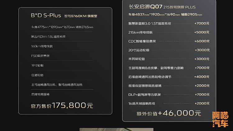 与市场上同级别车型相比,优势明显。例如同样 17.58 万的比亚迪宋 PLUS DM-i,车身尺寸比长安启源 Q07 小。