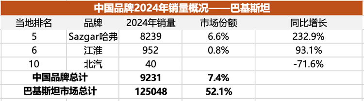 在这个十多万辆规模的市场中,中国品牌总计占了7.4%的份额,领头的是哈弗和当地的合资公司,全年销量8千多辆。
