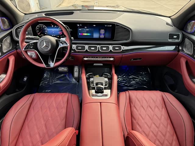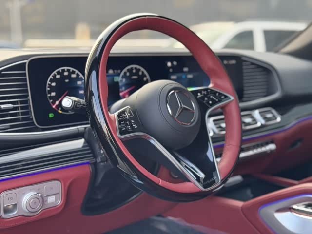 25款美版奔驰GLS600 迈巴赫 黑色金属漆 丹霞红内饰4座 23寸多幅轮 冰箱 桌板 香槟套件 桃盘 脱困模式 魔术底盘 大柏林音响 迈巴赫流线条内饰 真皮扩展包
