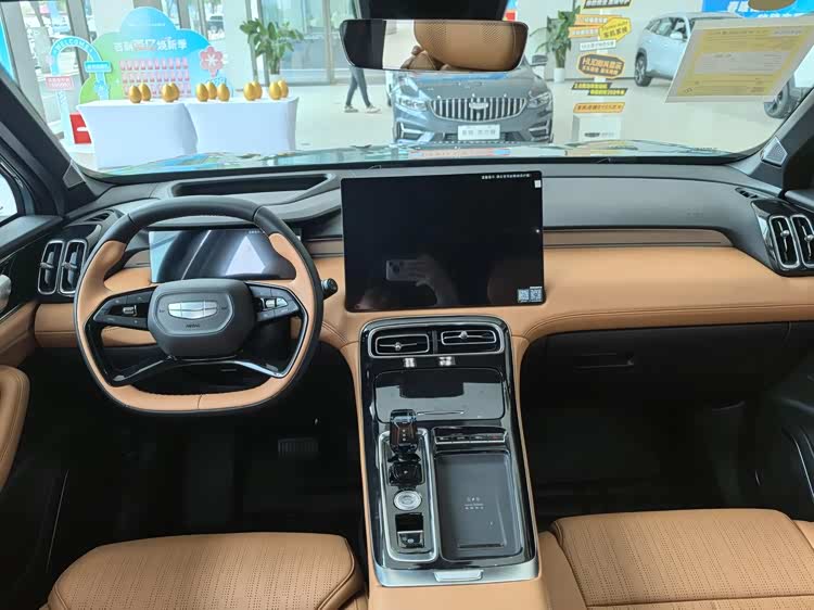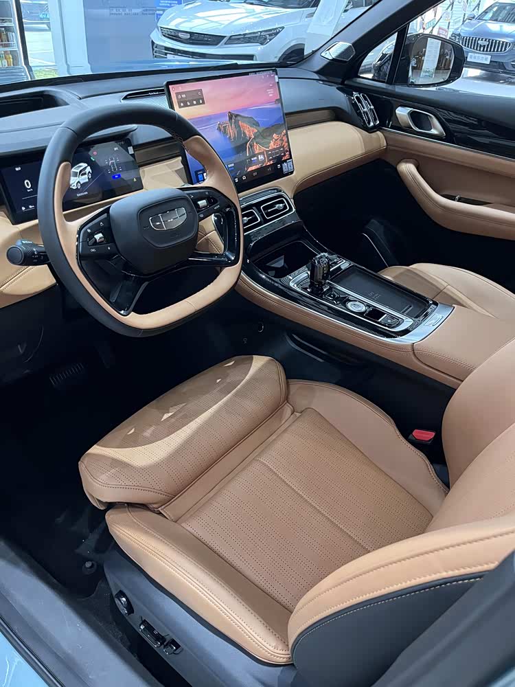 内饰的变化同样焕然一新,多层次感的环抱式中控台上配备15.4英寸2.5K横向中控屏,并搭载龍鹰一号座舱芯片加持的Flyme Auto 1.8最新车机系统。副仪表台的造型则类似吉利星愿,并配备水晶电子挡把、50W手机无线充电等。同时,棕色风格配合四辐式多功能方向盘、AR-HUD抬头显示、电动座椅腿托、256色氛围灯、16扬Flyme Sound无界之声音响系统等,又营造出豪华气息。