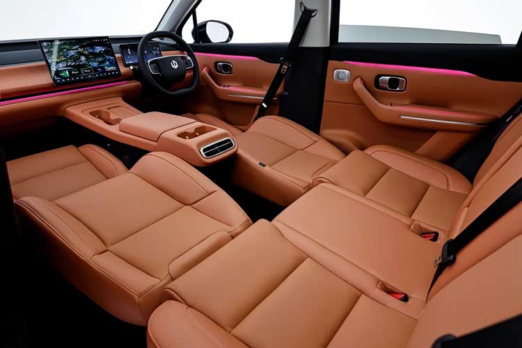 从空间上来看,新车轴距达到2905mm,空间利用率高达86%,后排头部和腿部空间表现不错。另外车内储物空间较大,双层后备厢可容纳12个20寸行李箱,后排座椅放倒后可形成“星空大床”,满足露营需求。