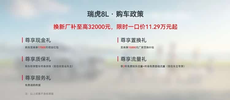 而瑞虎8L明确的优势:有7座、可加92号油、中控大屏更优以及安全配置更优。