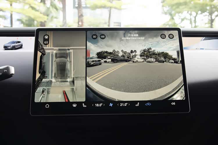 中控台位置是一块 15.6 英寸的中央触控显示屏,屏幕尺寸适中,操作界面直观,日常使用中无论是调节车辆设置还是查看多媒体内容都比较方便。平底式多功能方向盘握感舒适,两侧按键布局合理,日常驾驶中盲操作的便利性不错。换挡机构采用了拨杆式设计,位于方向盘右侧,这种设计节省了前排中央区域的空间,让中控台下方形成了一个开放式的储物区域,实用性有所提升。