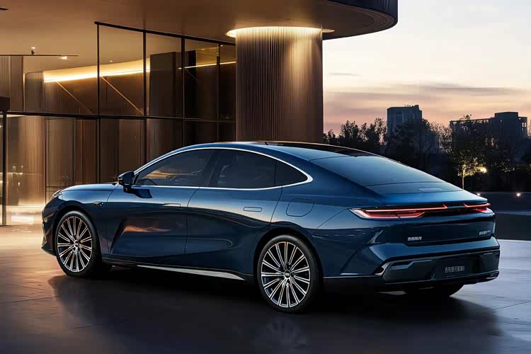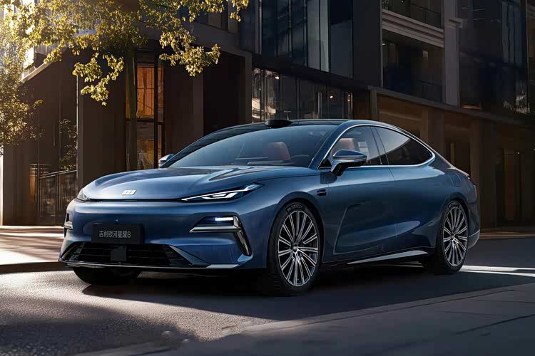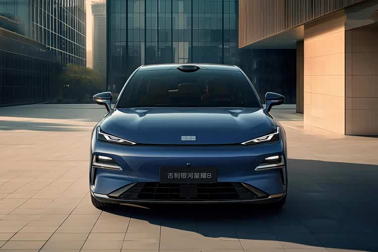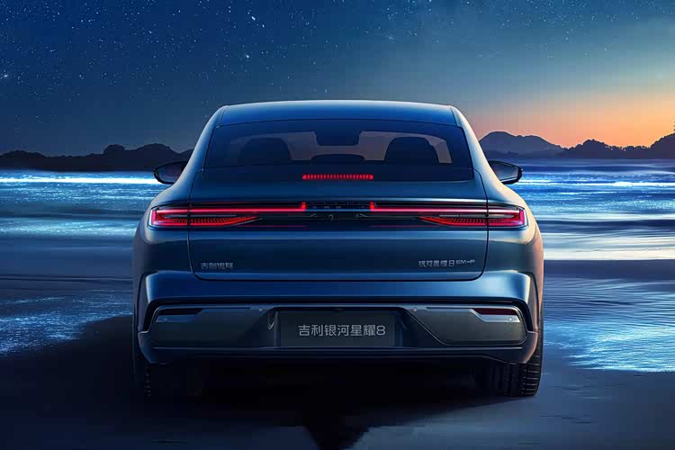 在外观方面,该车大体上采用了银河E8的设计风格,主要的不同除了车顶激光雷达之外,还有前脸部分采用了更加个性的分体大灯,T字形的雾灯区镀铬装饰,更大尺寸的梯形下格栅等元素,增强了运动感。车身侧面和车尾部分确实是和E8一样,就不多说了,流线的车身风阻系数依旧是0.25,大尺寸的轮毂隐藏式车门把手,无框车门,标准的三厢尾门贯穿式尾灯等元素都不会缺席,三围达到5018/1918/1480毫米,轴距为2928毫米,由于就是银河E8的车壳,也不会有太大的区别。