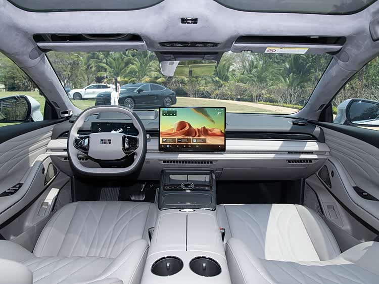 在内饰部分倒是采用了全新的设计,抛弃了银河E8上的贯穿式超大屏,采用了最新的家族风格,向银河E5等车型靠拢,双悬式大屏Hud抬头显示不会缺席,平直中控台面有丰富的层次感,撞色工艺内饰覆盖也是一大亮点,大面积皮革缝线工艺成为了核心的装饰元素,扶手箱前端区域杯架储物格们,甚至还保留了简洁的机械旋钮,怀挡档机构隐藏于独特的方正方向盘后方,高通骁龙8295车机芯片当然不会缺席,Flyme Auto车机也是标配,高配车型还有后VIP排行政座椅,是同级别同价位中少见的满配座椅通风加热按摩的轿车,23扬声器魅族品牌音响也有着的表现。