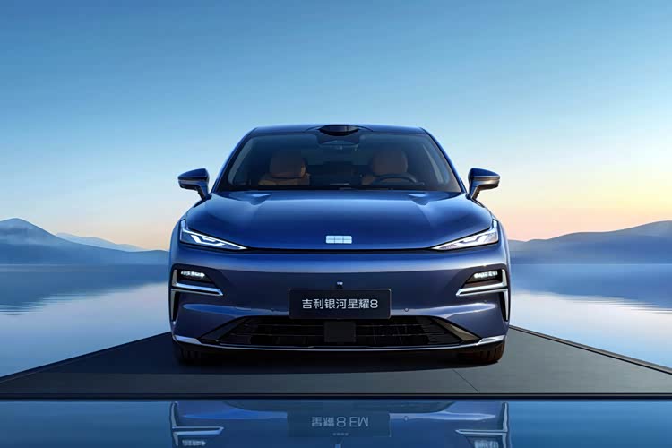 外观方面,吉利银河星耀8混动版与纯电动轿车主要区别在于车头的设计。保险杠上不再有“破损”的发光元件,而是内置大量 T 形镀铬部件,下部有一个完整的进气口。此外,与电动汽车一样,混合动力车型也配备了无框车门和可伸缩把手。
