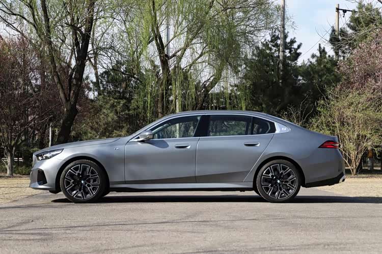 2025款宝马5系在外观上新增的磨砂纯灰车漆,无疑是一大亮点。选配价格23100元,却为整车增添了别样的气质。相较于普通亮面车漆,磨砂质感漆面不会反射路面倒影,使整车轮廓线条得以完美呈现,更显简洁平整。搭配额外选配的20英寸轮圈(选配价格13000元),前245mm后275mm的宽度,将5系的运动气质烘托得淋漓尽致。