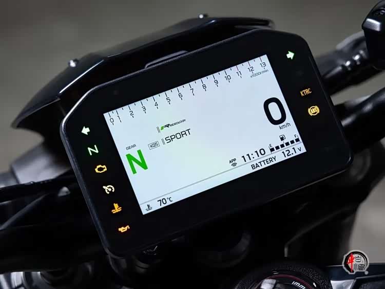 全车LED光源不再是亮点,真正革新在于灯光与车体的结构融合。头灯采用倒三角LED主灯布局,日行灯带与棱角灯罩形成独特造型。尾灯通过导光技术实现3D立体效果,尾钩贯穿式设计与车尾线条自然衔接,强化了整车的运动感。车机系统采用5英寸TFT全彩仪表,支持昼夜显示模式切换,除基础行车数据外,新增了源自航空仪表的倾斜角度可视化功能。通过手机互联可实现导航路线投影,并实时显示运动/公路/雨天等多种骑行模式状态。