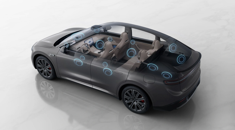 此外,智界R7还配备了17个扬声器的HUAWEI SOUND音响系统(含低音炮和独立功放),配合华为自研声场算法和7.1.4声道环绕音效,在带来音乐厅级空间声场还原的听觉盛宴的同时,还与整车NVH技术联动,通过双层隔音玻璃+增程器静音算法降低环境噪音,提升音响纯净度。