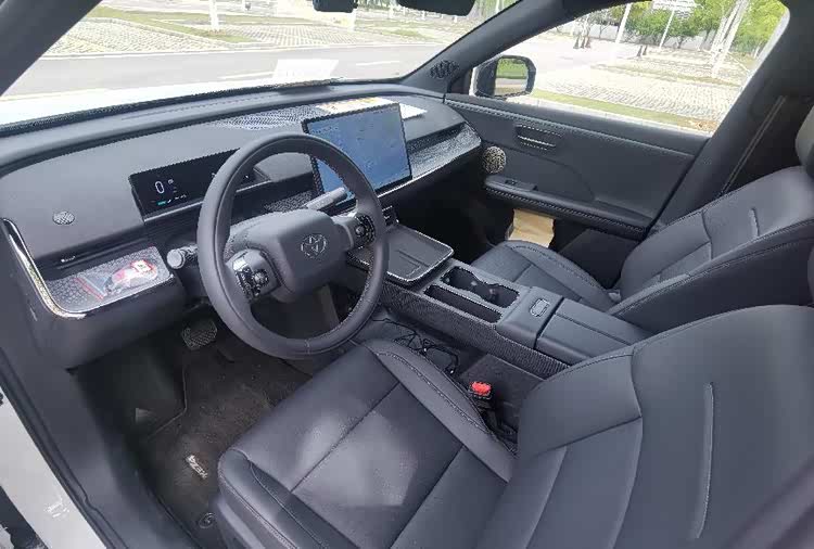 当驾驶铂智3X,踩下电门的一刻,铂智3X的 “三合一高功率电机” 展现出丰田对“平顺性”的执着:0-50km/h加速3.2秒的爆发力被调校得线性可控,既无突兀推背感,又能轻松甩开拥堵车流。转向手感保留了丰田燃油车的细腻阻尼,配合 50:50前后配重比+低重心设计,在狭窄巷道中穿梭竟有几分轿车的灵活感。