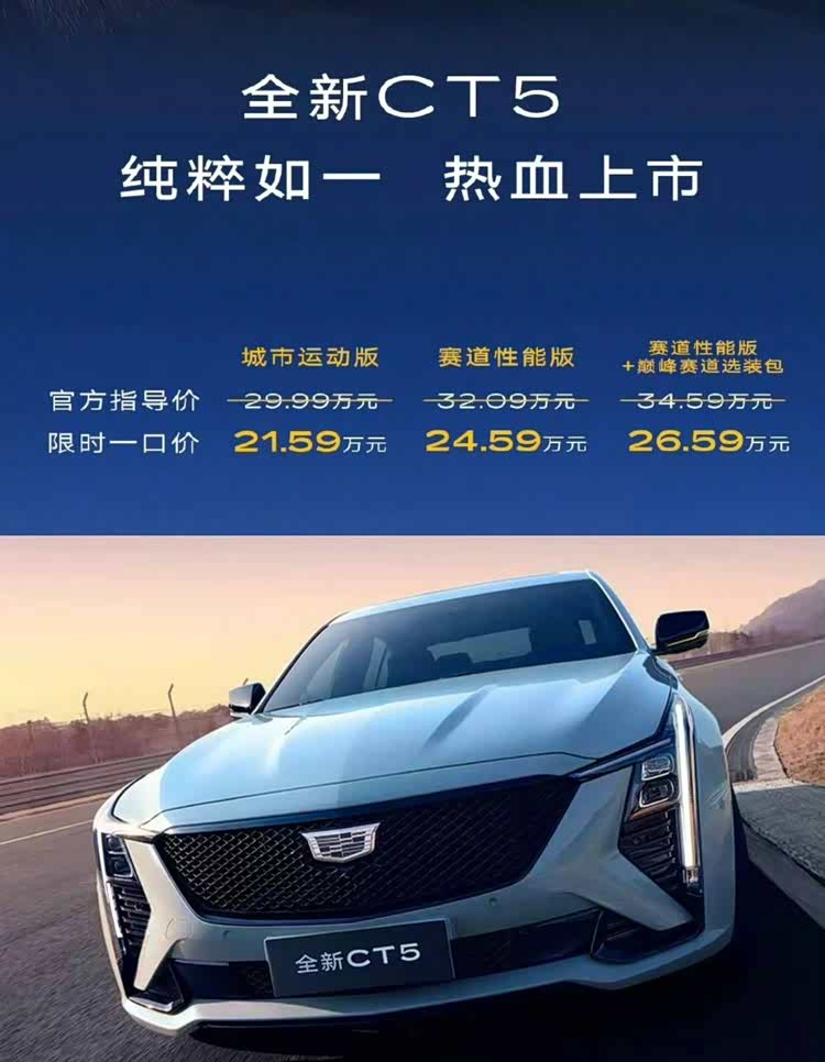 2025款凯迪拉克CT5在车型配置和价格策略上进行了调整,推出了“一口价”模式。其中,城市运动版和赛道性能版的“一口价”分别为21.59万元和24.59万元。相较于2024款车型,2025款的起售价(城市运动版)从28.97万元降至21.59万元,直降7.38万元。而顶配的赛道性能版(含巅峰赛道选装包)仅售26.59万元,与2024款相比,差价达7.58万元。除了价格上的优势,凯迪拉克还推出了“战损回血礼”活动。在活动期间,如果车辆单次定损超过车价的三成,车主可以享受免费置换等价新车的优惠。