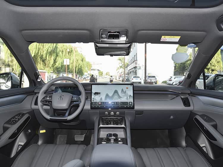车尾部分采用贯穿式尾灯组与竖向高位刹车灯组合,配备主动式电动升降尾翼,后包围融入扩散器造型元素。辅助驾驶系统方面,中低配车型搭载5个毫米波雷达、12个超声波雷达及12个摄像头,支持高速领航与泊车辅助功能;高配车型则升级激光雷达与英伟达Orin X智驾芯片,可实现城市领航等更高级别自动驾驶功能。