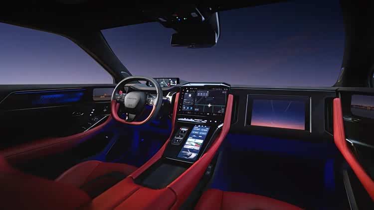 车内搭载AI沉浸式运动座舱系统,由AR-HUD和12.3英寸曲面屏组合而成,小尺寸椭圆形多功能方向盘连接144Hz刷新率的线控转向系统带来精准操控,副驾首次搭载华为光场屏,此外,配合18像电动零重力座椅、香氛和杜比全景声音响营造富有氛围感的座舱体验。