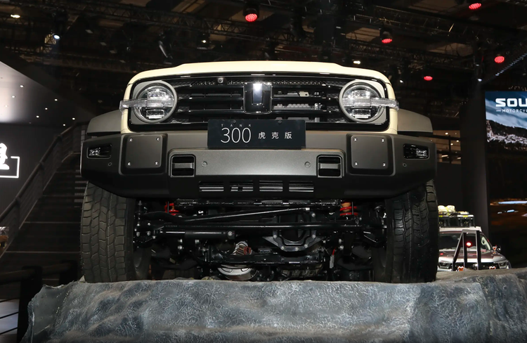 这个版本可以理解为原厂的改装,而且是非常深度的改装,并不是简单改一些悬架系统或者越野轮胎。因为整个底盘趴下去看的话已经完全不一样,普通的坦克300采用后整体桥的悬架结构,不过两个前轮悬架还是独立的,但这次的虎克版本直接就变成了前后整体桥,所以底盘确实是更加硬派一些。