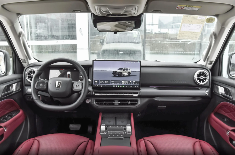 另外今年2025款的坦克300系列车型已经对内饰进行了精装修,改造的力度还是比较大的,比如提供了更大的悬浮车机中控屏幕,而且匹配有高通8155芯片,同时也换成了比较流行的怀挡设计,所以整个扶手箱前方区域就更加规整一些。