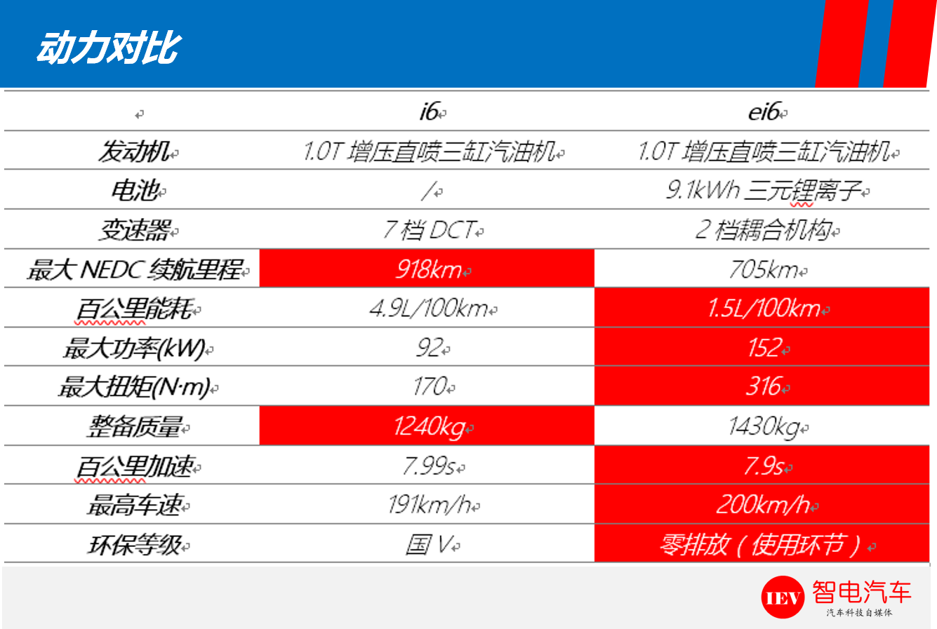 总体来看,ei6在经济性、动力性方面均比i6略好,在底盘、配置方面相差不大。由于两者存在较大的价差,如果在上海地区则非常适合购买,在其它无特殊政策优惠的地区则就不如i6更实惠了。