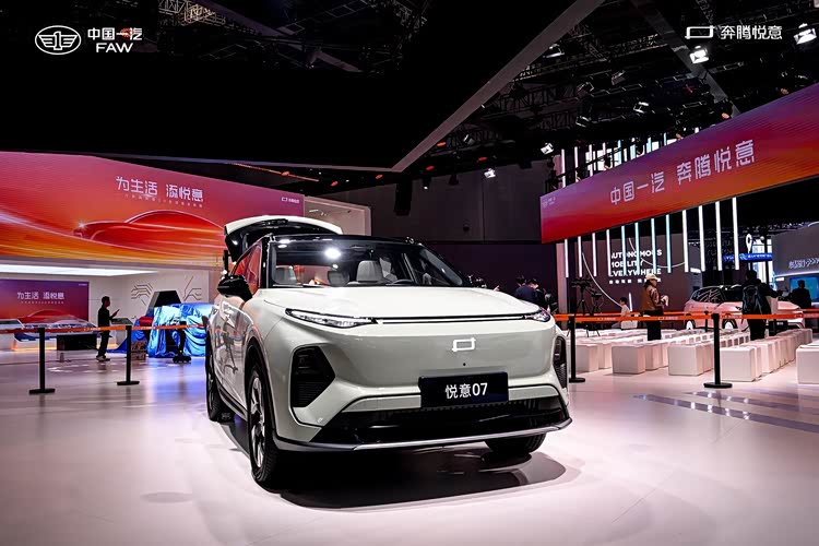 这种“去商业化”的展台设计,本质上是在传递品牌价值观:奔腾悦意不是冰冷的交通工具,而是“为生活添悦意”的伙伴——你可以开着悦意03带全家去郊游,用悦意08的大空间装婴儿车,开着悦意07长途自驾不用担心续航,下车后还能在展台喝杯咖啡,享受片刻松弛。