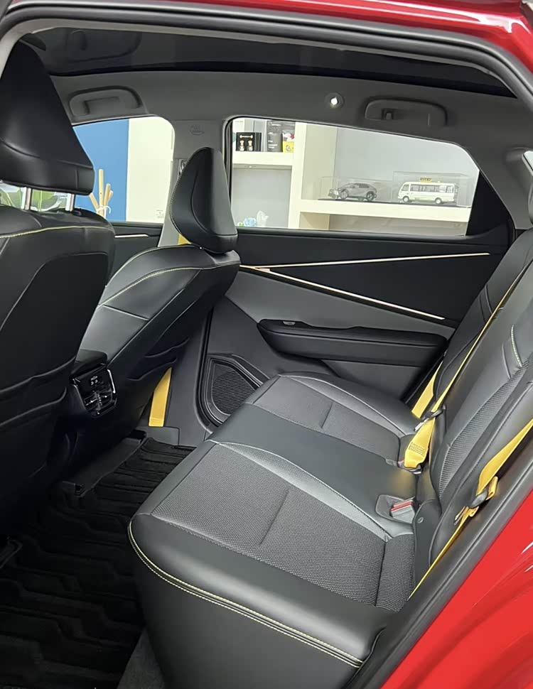 车尾部分,顺延大溜背所形成的外延锋利“小鸭尾”,结合直插车身并塑造出回勾样式的贯穿式尾灯以及呼应前脸造型并内置有大尺寸扩散器的后包围设计,则让其外观整体极具未来感的酷炫跨界风格设计,得到了完美收尾。