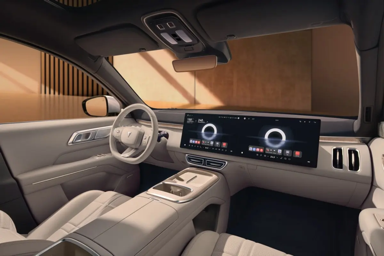 深蓝S09配备了两块2.5K分辨率的15.6英寸中控液晶屏幕,以及一块3K分辨率的后排液晶屏幕,更有43英寸超高清AR-HUD提供丰富的行驶信息,科技感满满。它还搭载了鸿蒙座舱5.0系统,运行速度较前代产品有了大幅度的提升,更支持六区域语音识别等多项便捷功能,通过车内的屏幕,无缝连接手机、平板等,轻松实现“车家互联”。