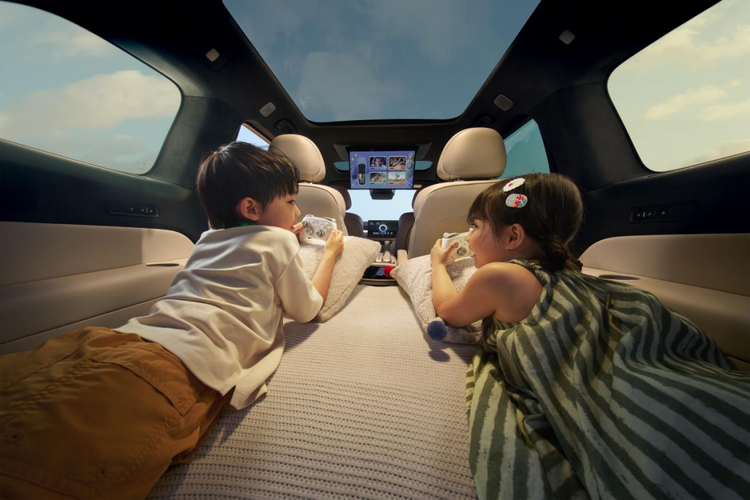 此外,二排乘客的头顶上还有21.4英寸的3K液晶屏幕,闲暇时光将座位往后调整些许,和你的爱人一起在车内“躺平”,一起吃着零食追着热剧,那感觉也是挺赞的。智能移动中岛+便捷的座椅布局,可以实现“三间房五张床”的空间变化,提供办公书房、移动客厅、超大卧室这三间房的舒适体验,而在配上生态床垫后,亦可以提供2.5m露营床、1.9m后舱大床、1.8m单人床、1.8m双人床、1.3m儿童床5种适配不同场景的“移动床铺”,绝对可以满足用户露营、亲子、午休等不同场景休息需求。