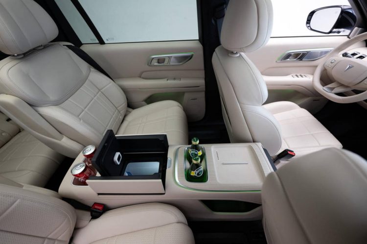 此外,深蓝S09还配备了一体式智能移动中岛,拥有前后700mm超长移动距,更内置了支持-6℃-50℃制冷制热的10L压缩机冰箱,酷热的夏季可以在车内喝上一罐冰镇可乐,严寒的冬季亦能品尝一杯浓郁的奶茶,这感觉想想还是挺美的。