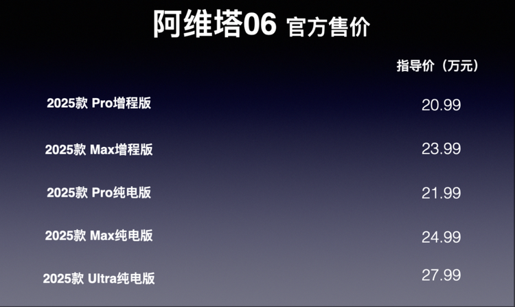近日,阿维塔06正式上市。新车共推出5款不同配置车型,售价区间为20.99-27.99万元(限时19.19-26.19万元)。全新车型定位于中型车,尺寸比阿维塔12更小,是阿维塔旗下入门级轿车,提供了纯电和增程版供消费者选择。那么问题来了,哪款最适合您呢?