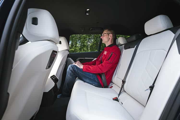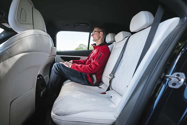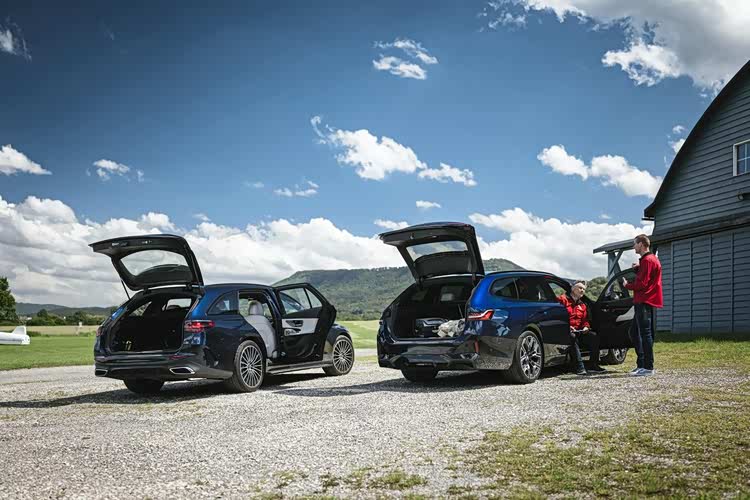 关上尾门,把座椅靠背调直,然后入座。坐在宝马车的后排要比坐在奔驰旅行车的后排更舒适。奔驰E级旅行车有着汽车制造领域里可能独一无二的后排安全带高度调节功能。坐在宝马旅行车的后排长椅上,大腿几乎能完全平放,双脚也能更自在地伸到前排座椅下方。而且测试车配备了四区空调。然而,当双手碰到那看上去颇为简陋的车门内饰板时,感觉就不太舒服了。