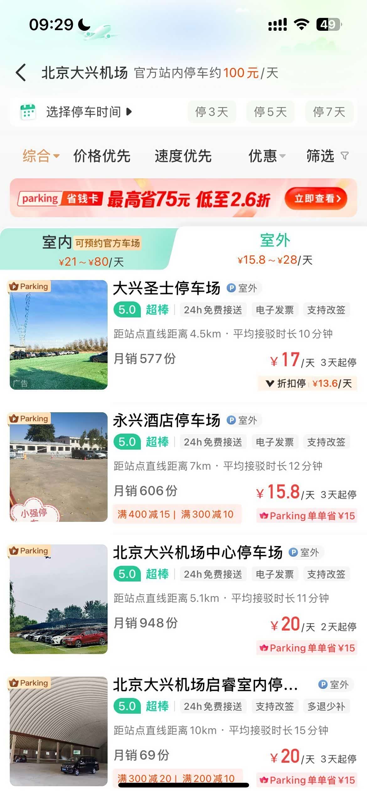 设想一下,您驾车载着亲朋好友,满怀期待地奔赴北京大兴机场,无论是踏上一段精彩的空中之旅,还是迎接从远方归来的至亲挚友,自驾出行都能让您随心所欲,彻底摆脱公共交通的种种限制。计划前往大兴机场的旅客们,是否正为高昂的停车费用而忧心忡忡?实际上,有个超划算的停车方案!大兴机场内部停车场每日收费上限高达100元,费用着实不菲。不过,您要是想停车更省钱,您只需微信搜索【小强停车】在上面查看附近停车场,就能轻松预约机场周边的停车场,而且输入邀请码“58”,还能领取38元停车抵扣券。通过小强停车平台预约周边车位,每天仅需15元!#