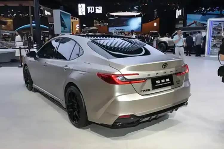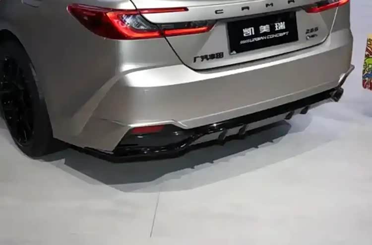 车尾部分,凯美瑞URBAN CONCEPT虽然没有进行大刀阔斧的改动,但依然有着独特的设计之处。后部保险杠下方采用了高光与黑色相结合的创新设计风格,搭配仿导流槽的扩散器设计,不仅在视觉上营造出一种强烈的运动氛围,还能在一定程度上优化车辆的空气动力学性能。同时,车尾的标志和文字符号也进行了黑化处理,与整体风格相得益彰。