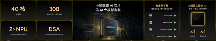 为匹配高阶AI智驾的算力需求,小鹏汽车全栈自研体系的核心技术成果——小鹏图灵AI芯片,专为大模型定制,自研神经网络处理大脑、单颗最高可跑30B(300亿)参数量的本地模型,算力是现有芯片的三倍,将于2025年第二季度在中国内地率先量产上车。