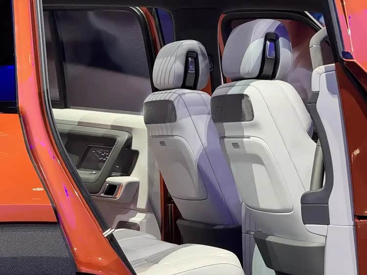 据观察,中控台下部安装了车载冰箱,前排座椅的背部后方都配有小桌板,整个第二排的空间与方程豹豹5相似。