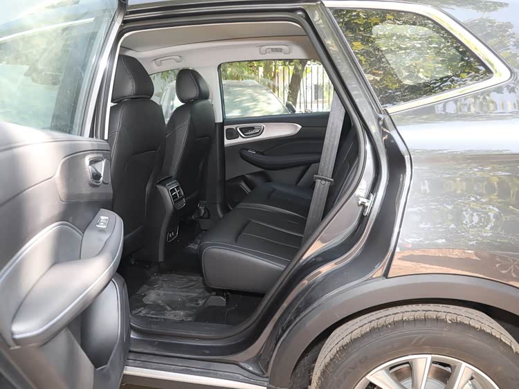 侧面造型方面,车顶略带一点弧度,配备有粗壮的行李架以及鲨鱼鳍,带来了一定的力量感;腰线采用了贯穿式设计,从前翼子板延伸到车尾,点缀出了车身侧面的层次感,同时也让车身显得比较修长;轮眉和侧裙部分设计有隆起的黑色饰板,凸显了力量感;轮毂采用了双五辐式造型,风格还算简洁。