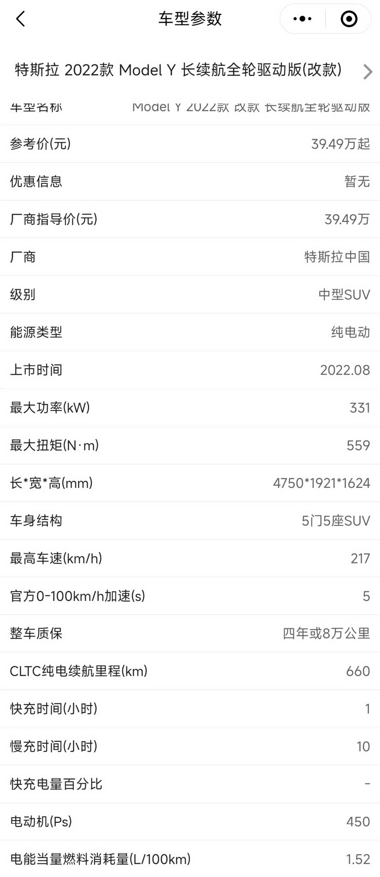 年款配置:特斯拉2022款Model Y长续航全轮驱动版(改款)