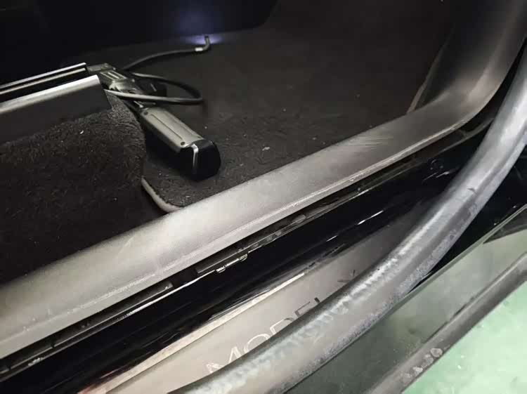有一说一,Model Y的内饰很简单,但也很有科技感,同时也可以看到内饰的成色保持的不错,只有少许的磨损痕迹。