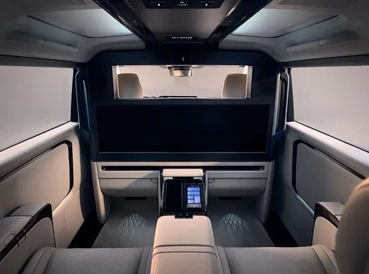 在后排空间和舒适性方面,该车为两位VIP配备的可升降智能屏尺寸“仅为”32英寸,但同样可形成前后舱隔绝空间。此外,“云感礼宾座椅”亦拥有“一键奢享”模式和18向分区调节、18点分区指感按摩等丰富功能,豪华车载冰箱当然也必须安排上。