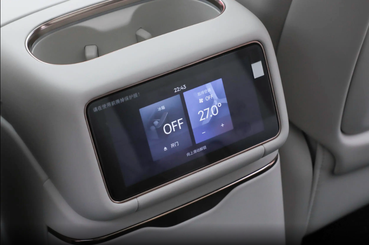 另外,二排中间搭载9L容量的冷暖冰箱(保温区间35°C-50°C),前后排共有6个Type-C接口,加上前排手机无线充电,能够确保全车乘客同时给手机、平板电脑充电;在全车采用双层夹胶玻璃情况下,后排升级深色隐私玻璃+手动遮阳帘,进一步改善私密性体验,配备Harman/Kardon哈曼卡顿音响和23个扬声器,理想L9仅提供21个扬声器,同时在吸顶屏、二排侧滑门增加防夹手功能,进一步保障儿童老人使用安全。