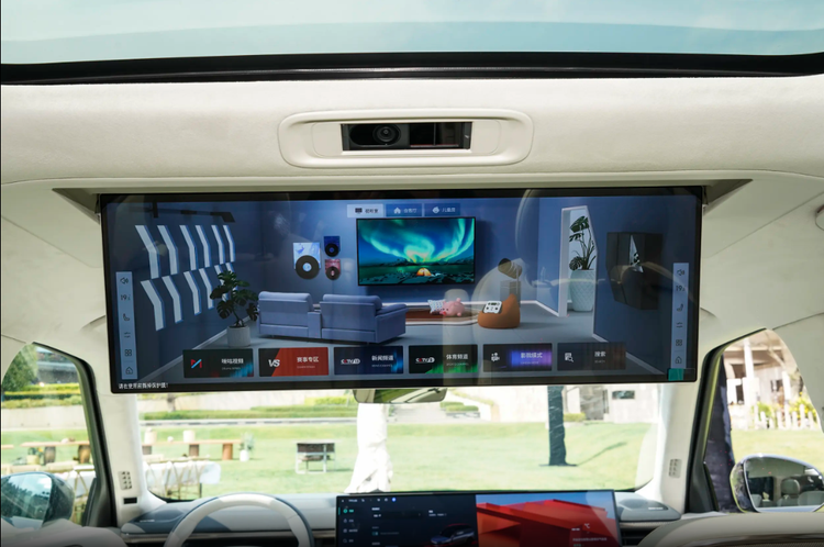 二排车顶配备30英寸吸顶屏(分辨率6K),理想L9是15.7英寸吸顶屏(分辨率3K),领克900能够将车内打造成游戏室、观影厅和会客厅,而且这个吸顶屏支持分屏播放,左右乘客互不干扰,而且第三排家人也能通过语音识别功能,轻松调节大屏节目、功能,二排还给了一块液晶屏,用来触控操作空调、座椅功能,也有小桌板(可折叠),方便孩子做作业、大人现场办公。